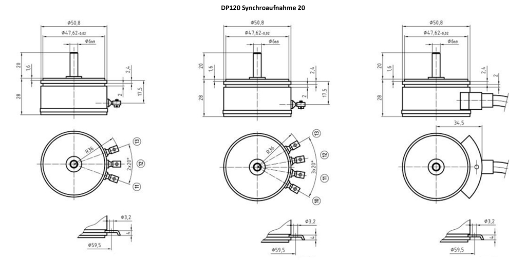 - Befestigungsarten: Zentralbefestigung, Synchroflansch (Größe 20)