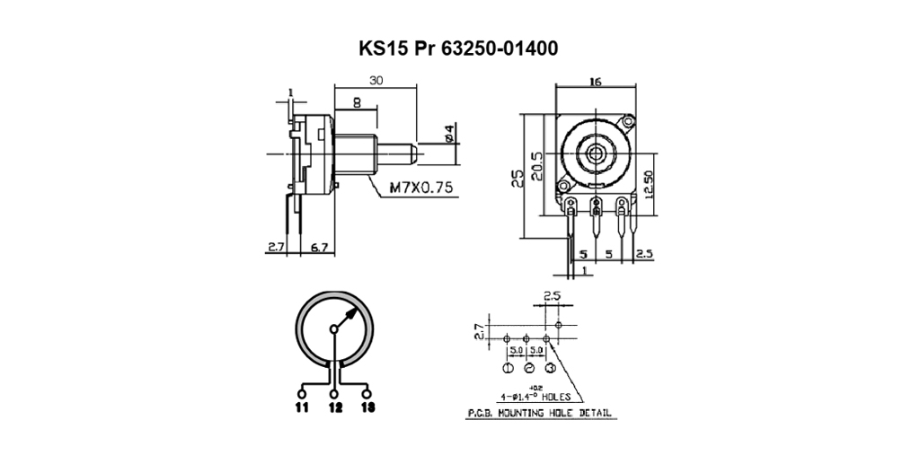 Die Serie KS15 ist mit einem Kohleschicht-Widerstandselement ausgestattet. Dieses preisgünstige Potentiometer verfügt über eine Metallwelle, die in den Ø4 und 6 mm lieferbar ist.
