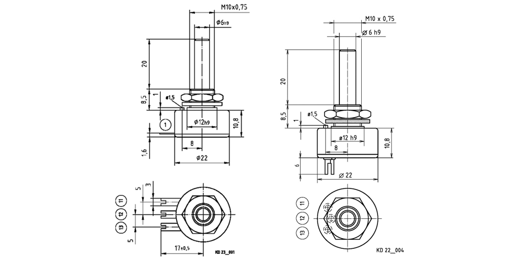 Die Leitplastik-Präzisionspotentiometer dieser Produktlinie eignen sich für den Einsatz in allen industriellen Bereichen. Das glasfaserverstärkte Kunststoffgehäuse bietet eine hohe Festigkeit und Wärmebeständigkeit. Es kann zusätzlich vergossen werden und erreicht somit die Schutzart bis max. IP67. Zusätzlich wird die Welle im Boden gelagert, um axialen Belastungen entgegenzuwirken. Das Potentiometer ist in zwei Anschlussausführungen lieferbar: seitliche oder am Boden befindliche Kontakte. Durch ein Übergehäuse kann die Serie LPT18 zu einem Schaltpotentiometer ergänzt werden.